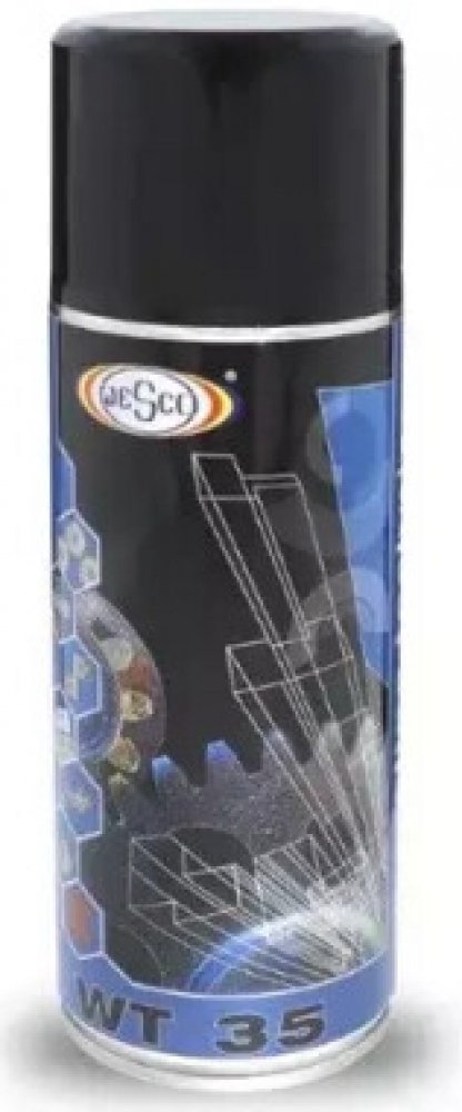 WESCO WT 35 – Technická vazelína ve spreji je vysoce výkonná vazelína na bázi minerálních olejů a speciálních zahušťovadel, dodávaná v pohodlném sprejovém balení. Vytváří pastovitý film, který dlouho přilne k povrchu, zajišťuje výbornou odolnost proti vodě a ochraňuje kovové i neželezné součástky před opotřebením a korozí.