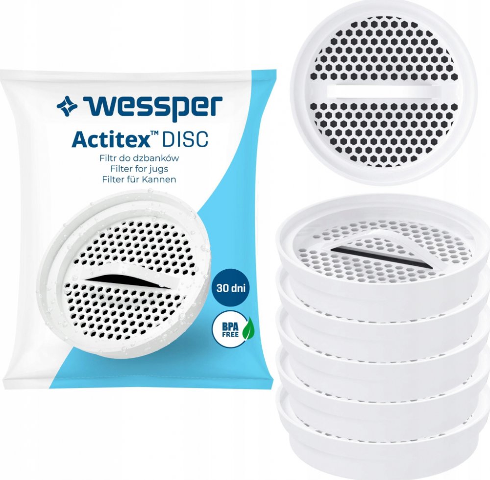 Wessper Actitex™ DISC znamená nejen efektivitu, ale také vynikající výkon 1 měsíce nebo 250 l přefiltrované vody.