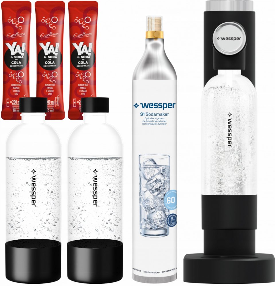 Výrobník sody Wessper S1 Soda maker + 2 další láhve + 3x sáček Ya Soda Cola 10ml