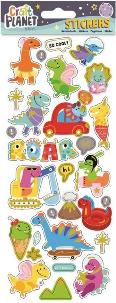 Samolepky s motivem dinosaurů. Můžete použít na vaše projekty např. scrapbooking, decoupage, výzdobu kartiček, bloků, diářů i na jiné aplikace.