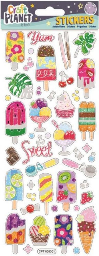 Samolepky s motivem zmrzlin. Můžete použít na vaše projekty např. scrapbooking, decoupage, výzdobu kartiček, bloků, diářů i na jiné aplikace.