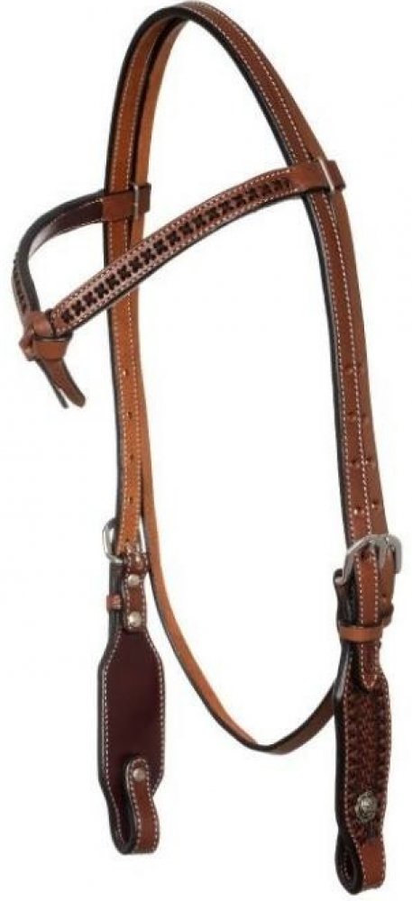 Westernová uzdečka POOLS s pletenou čelenkou chestnut