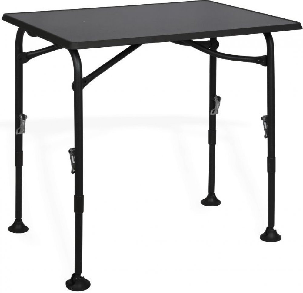 Skládací, výškově nastavitelný kempingový stůl. Velmi lehký a stabilní stůl s pracovní deskou typu Westfield. Výškově nastavitelné nohy v rozmezí od 63 do 76 cm. Každý model nabízí dostatek místa pro dvě, čtyři nebo až šest osob. Parametry: materiál konstrukce: hliník barva: šedá maximální nosnost: 30 kg rozměry: (Š x V x H) 80 x 63-76 x 60 cm / 100 x 63-76 x 68 cm / 120 x 63-76 x 80 cm rozměry ba...
