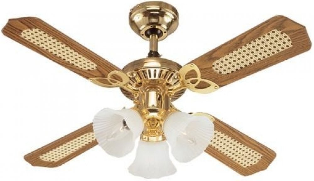 Stropní ventilátor s osvětlením Princess Trio - barevně měnitelné lopatky v barvě dubu s lehkým výpletem z jedné strany a v mahagonové barvě z ruhé strany.