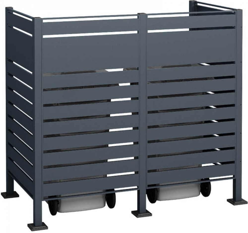 Kovová skříň na odpadky Westmann Planum | 2x240 l | antracit | 170x90x150 cmModerní a funkční - minimalistický kryt odpadkových košů Planum od společnosti Westmann umožní, aby vaše odpadkové koše během okamžiku zmizely za nadčasovou konstrukcí z práškově lakované oceli.Málokterý jiný předmět denní potřeby je tak nezbytný, ale zároveň vizuálně nepopulární jako odpadkový koš. S krytem odpadkových košů Planum od společnosti Westmann řešíme právě tento problém! Moderní kryt odpadkového koše šikovně ukryje váš odpadkový koš za tmavě šedou ocelovou zástěnu, která je vzadu a nahoře otevřená. Kryt na odpadkový koš Planum je navíc univerzálním řešením 2 v 1, protože kromě toho, že opticky zvýrazní váš odpadkový koš, plní kryt v závislosti na své velikosti a umístění také funkci dekorativní zástěny pro ochranu soukromí. Vaše odpadkové koše zůstávají přístupné díky otevřené konstrukci, která usnadňuje vyhazování odpadu. Zařízení můžete využít také jako alternativní úložný nebo odkládací prostor pro jízdní kola, košťata apod. Poznámka:Aby byl kryt na odpadkové koše stabilnější, měly by být sloupky mobilní konstrukce připevněny k pevnému povrchu pomocí přiložených vrtáků.Speciální funkce:Vložka do koše a zástěna pro ochranu soukromíModerní a nadčasový designProstor pro 2 odpadkové koše, každý o objemu 240 litrůKorpus z ocelového plechu s práškovým nástřikemPevné a odolnéModulárně roztažitelnýPředvrtané montážní dílyJednoduchá montáž