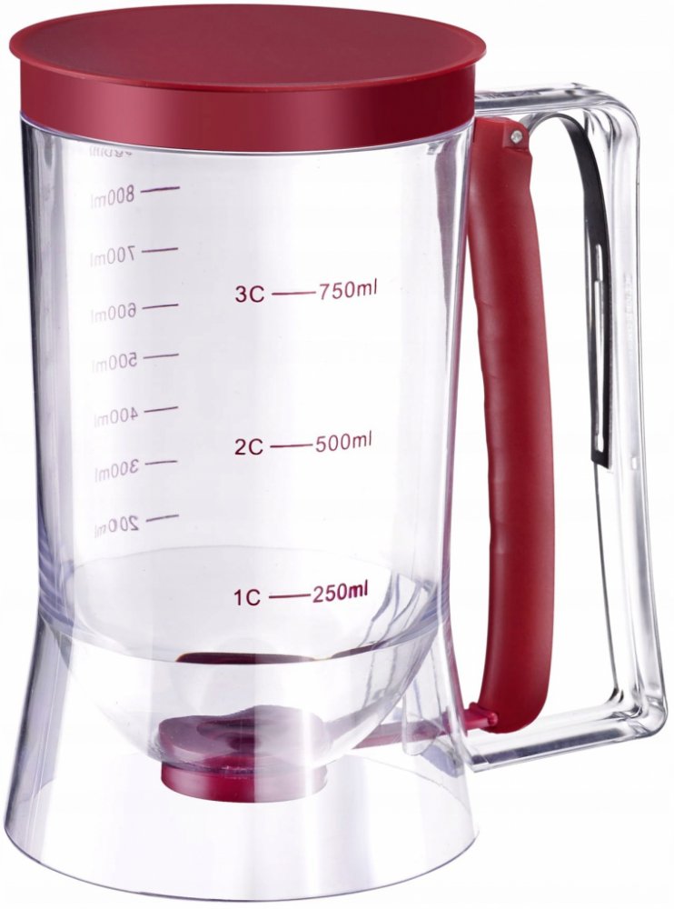 Porcovač těsta. Ideální pro porcování muffinů, muffinů, palačinek... Použití jednou rukou. S odměrkou. Objem: 900 ml.