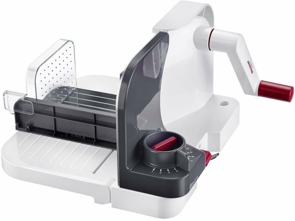Kráječ Westmark KOMPAKT představuje praktického pomocníka do každé kuchyně. Snadno a rychle nakrájí chléb, sýr, klobásy, zeleninu i ovoce. Disponuje broušeným řezným kotoučem vyrobeným z nerezové oceli, který zajistí precizní krájení potravin. Kráječ umožňuje nastavení tloušťky řezu až na 26 mm a jeho součástí je vodicí vozík s držákem potravin usnadňující jeho používání. Základna obsahuje přísavky, které zaručí jeho upevnění k pracovní ploše. Pomocí kráječe Westmark KOMPAKT pohodlně nakrájíte potraviny. Klíčové vlastnosti univerzálního kráječe Westmark KOMPAKTPraktický univerzální kráječSnadno a rychle nakrájí chléb, sýr, klobásy, zeleninu i ovoceDisponuje broušeným řezným kotoučem vyrobeným z nerezové oceliKráječ Westmark KOMPAKT umožňuje nastavení tloušťky řezu až na 26 mmJeho součástí je vodicí vozík s držákem potravinBarevné provedení: červeno-šedo-bílé