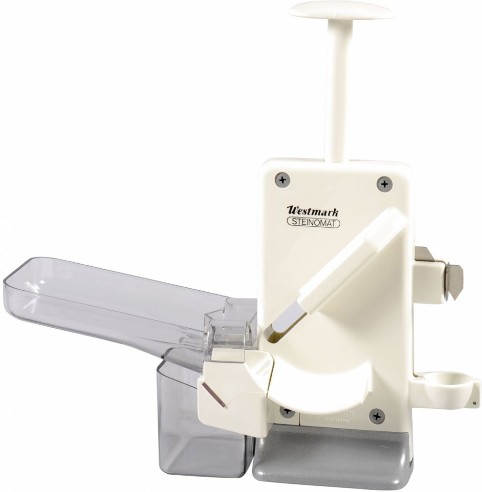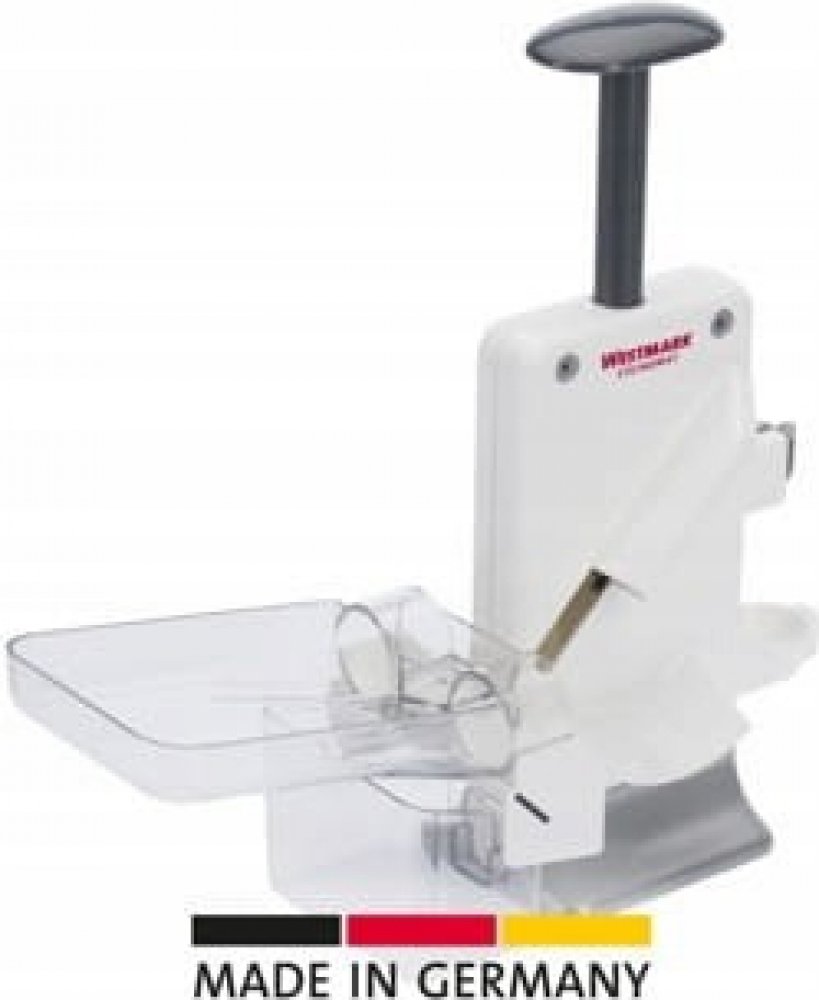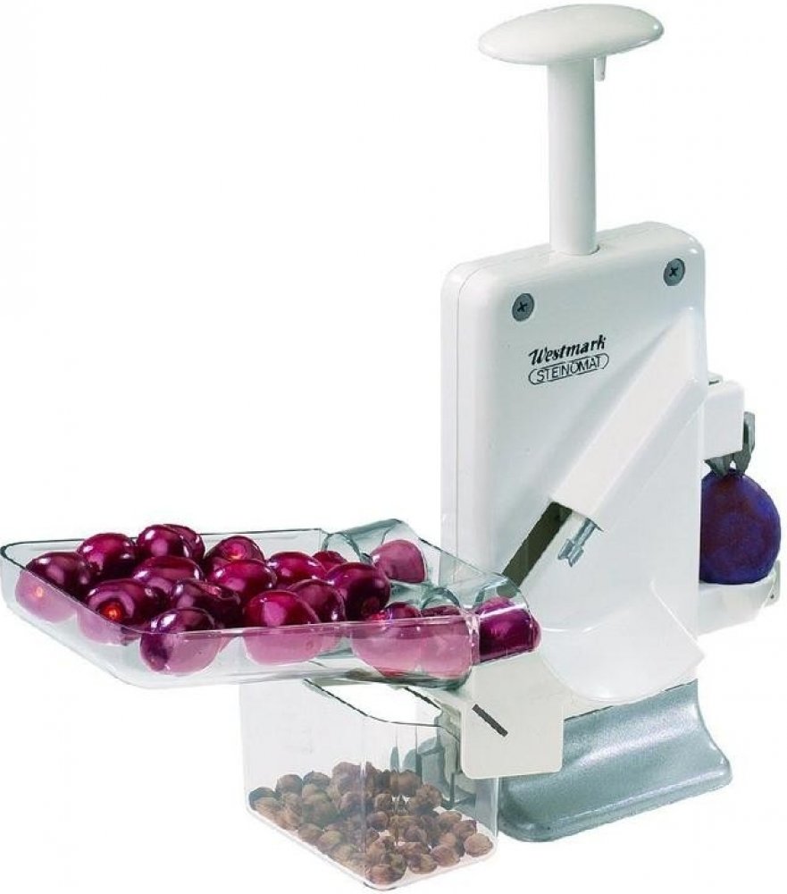 Univerzální mechanický odpeckovač švestek a třešní s dvěma hroty a vysokou stabilitou, s odnímatelnou nádobkou na pecky, kapacita až 20 kg za hodinu. Materiál: Pom, SAN, podstavec z lakovaného hliníku, hroty z nerezové oceli Výrobce: Westmark GmbH