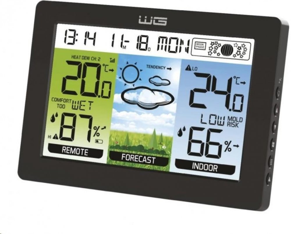 Meteostanice WG4 Catbrella Pokud máte rádi přehled o počasí a aktuálním stavu vašeho prostředí je pro vás ideálním pomocníkem. Měřit dokáže vnitřní i vnější teploty a vnitřní i vnější vlhkost. Meteostanice je vybavena LED podsívením displeje ve třech úřovních. Na přístroji je možné také měřit barometrický tlak či nastavit 12ti nebo 24hodinový formát. Čas je řízen automaticky pomocí radiového signá...