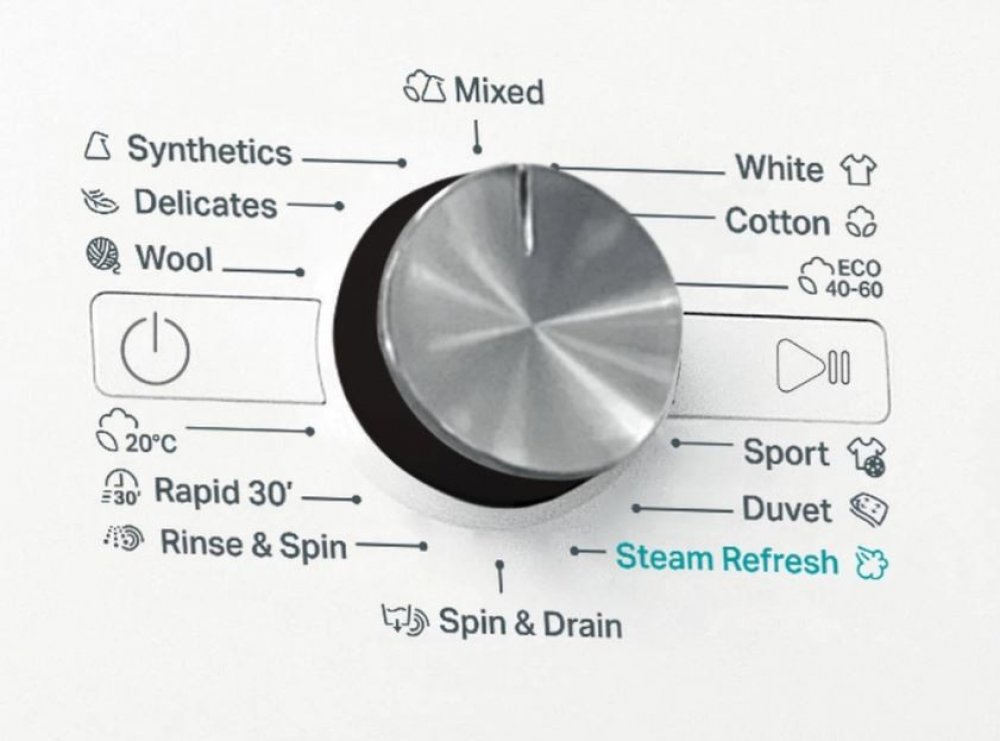 Funkce Steam Refresh regeneruje svěžest vašich oděvů a zabraňuje tak zbytečnému praní. Oděvy jsou znovu připraveny k nošení již za 20 minut. Pračka vytváří proud páry, který proniká do do vláken, odstraňuje nepříjemné pachy, uvolňuje vlákna a vyhlazuje záhyby.