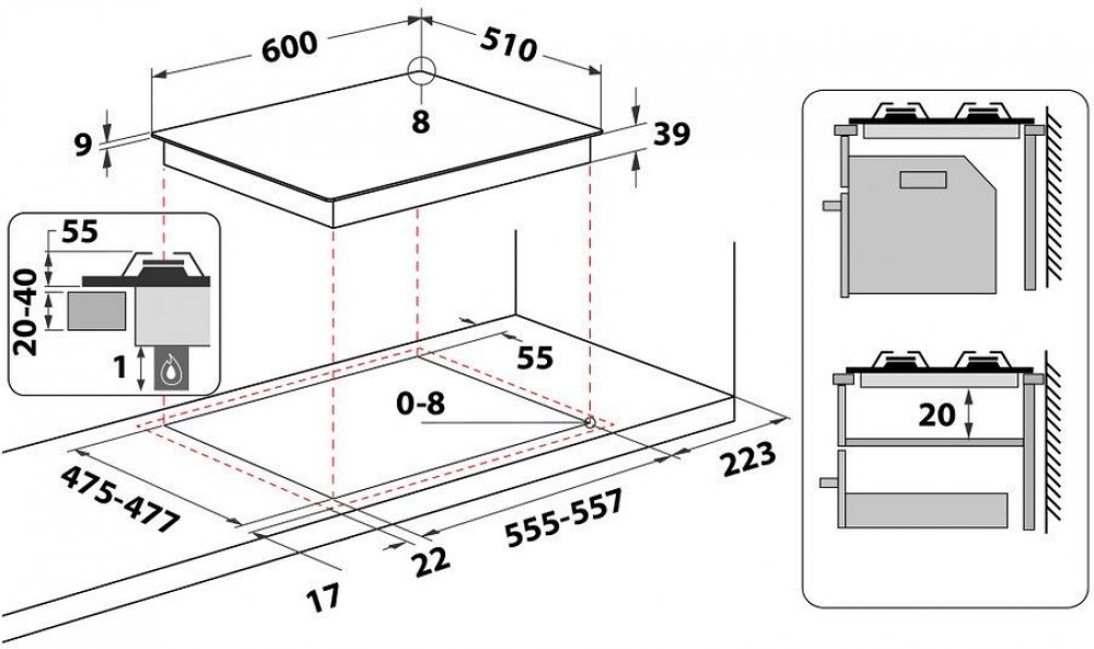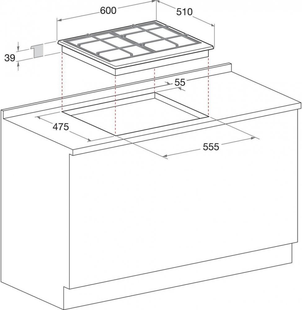 Rozměry otvoru pro zabudování (vxšxh) 41x555x475 mm