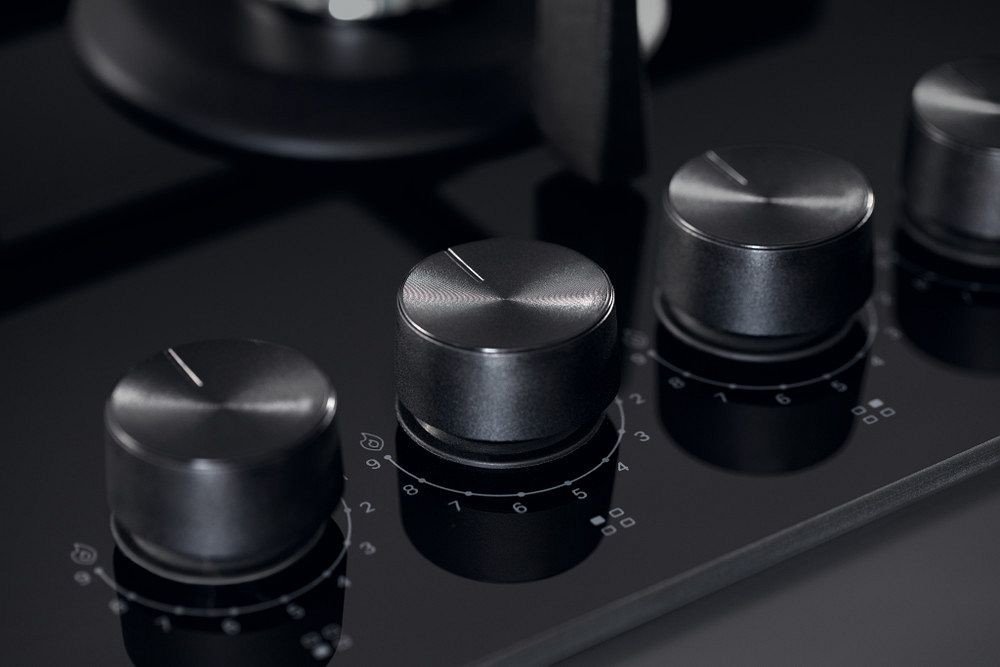 Plynová varná deska GOWL 628/NB EE s povrchem z černého tvrzeného skla.