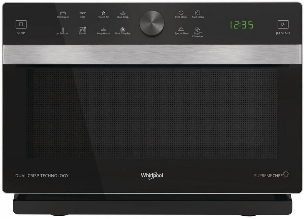funkce: mikrovlnný ohřev, gril, Jet Start, Jet Defrost - rychlé rozmrazování, Dual Crisp - zapékání jídel do křupava, Dual Crisp Fry, Combi - horkovzdušné pečení jako v klasické troubě, Auto Cook - možnost použití automatických receptů, Keep Warm - přihřívání, Speciální funkce - kynutí, rozpouštění másla/čokolády, Auto Clean - tento automatický čistící cyklus vám pomůže odstranit nečistoty z vnitřních stěn mikrovlnné trouby a odstranit nepříjemné pachy