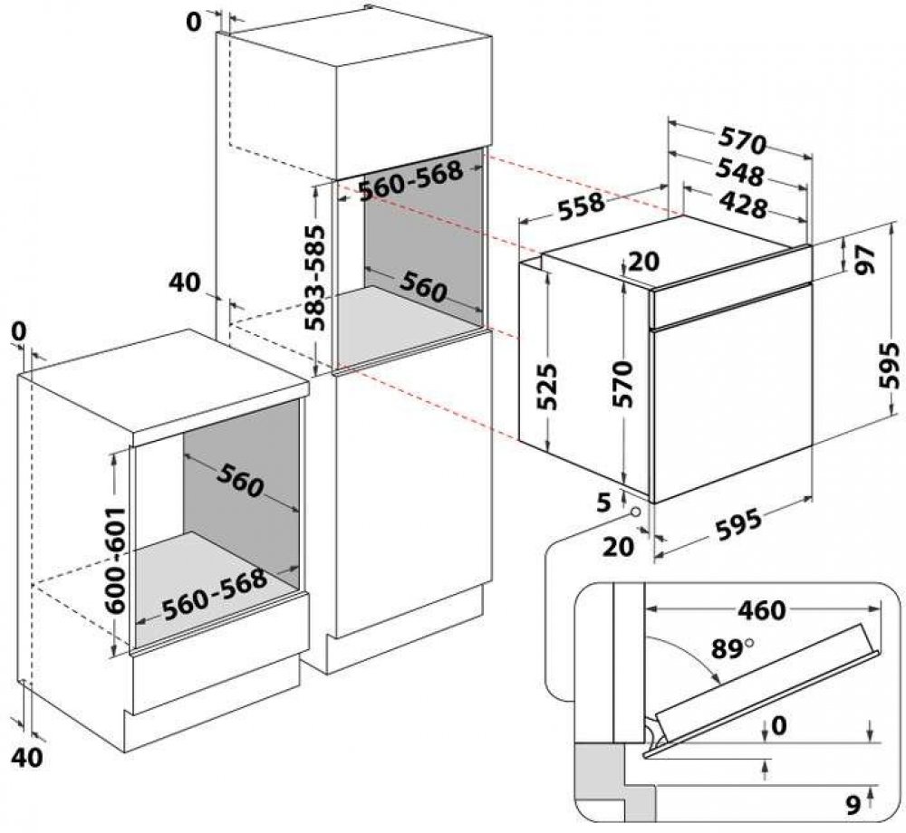 59.5 cm 59.5 cm 55.1 cm 71 l 12 A+ Whirlpool 26.9 kg elektrické katalytické černé