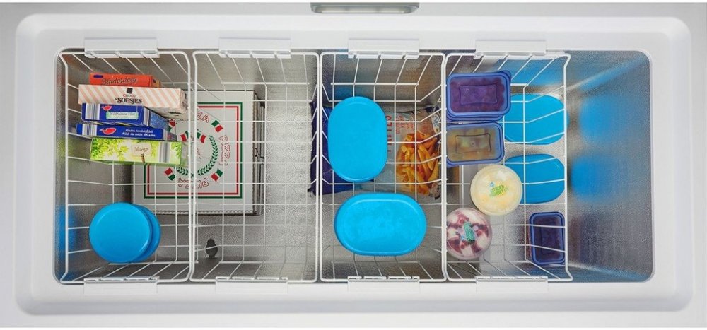 Perfektní organizace prostoru. Tato Whirlpool mraznička obsahuje praktické košíky, které vám pomohou uložit balíčky, krabice a sáčky se zmrazenými potravinami.
