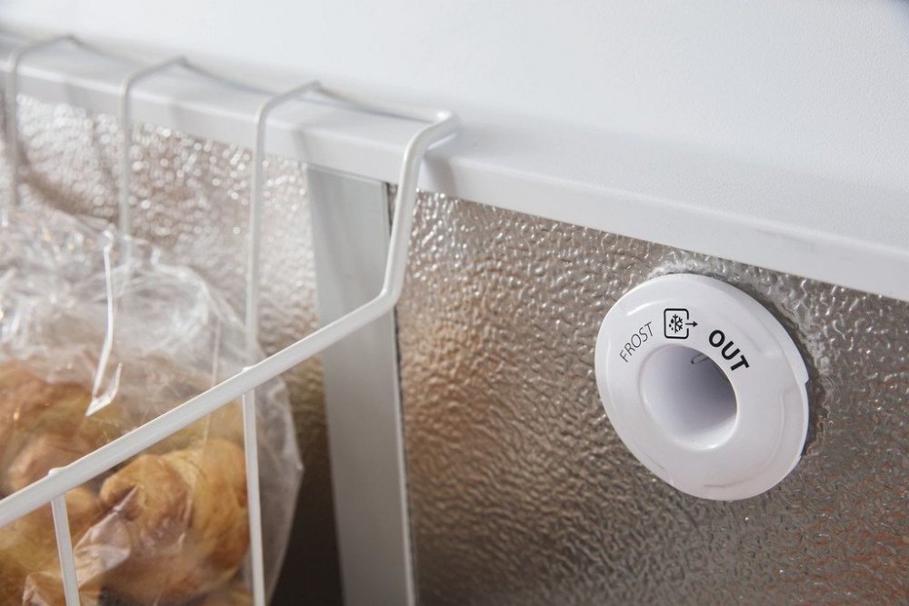 Snadnější otevírání a zavírání. Truhlicová mraznička má systém vyvažování dveří, takže se snadno otevírá a zavírá a při otevření zůstávají dvířka ve stabilní poloze.