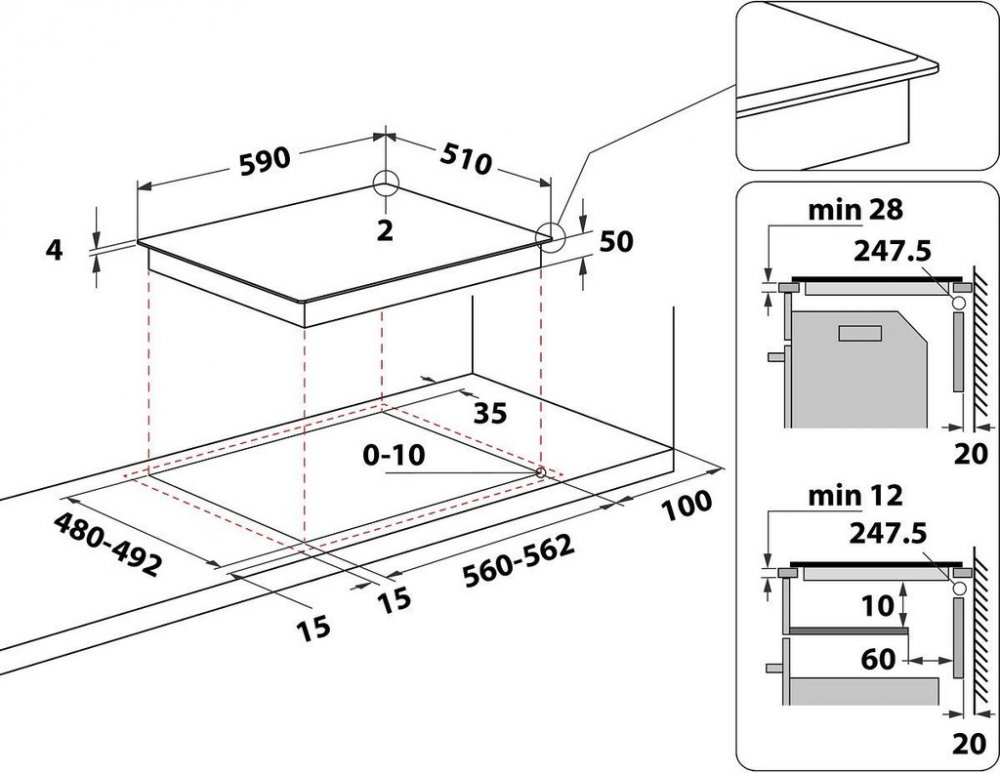 Přední část výrobku je zkosená, což zajišťuje lepší integraci s pracovní deskou.