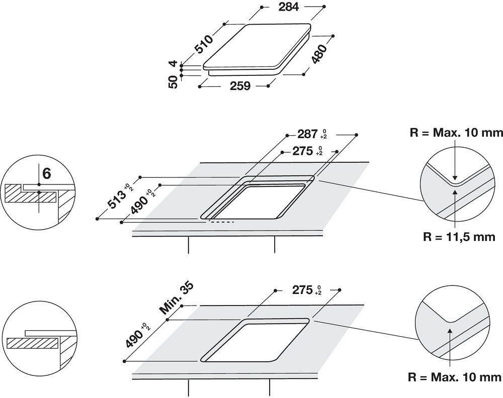 Whirlpool sklokeramické 5.7 kg 2 indukční dotykové černá 3700 W 220 - 240 V 50 / 60 Hz 5.4 x 28.4 x 51 cm 28.4 cm 51 cm 1.2 m