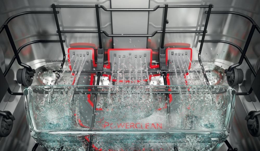 O 60 %* výkonnější vodní trysky umístěné ve spodním koši, které lze aktivovat pro zvýšení mycího výkonu a zajistit tak dokonale čisté nádobí bez předmytí. Rovněž optimalizuje umístění nádobí a poskytuje o 30 %** prostoru navíc ve spodním koši. *Procento vypočtené oproti výkonu vody v cyklu bez aktivované volby PowerClean. **Procento vypočtené oproti náplni u modelů stejné řady Whirlpool bez řešení PowerClean.