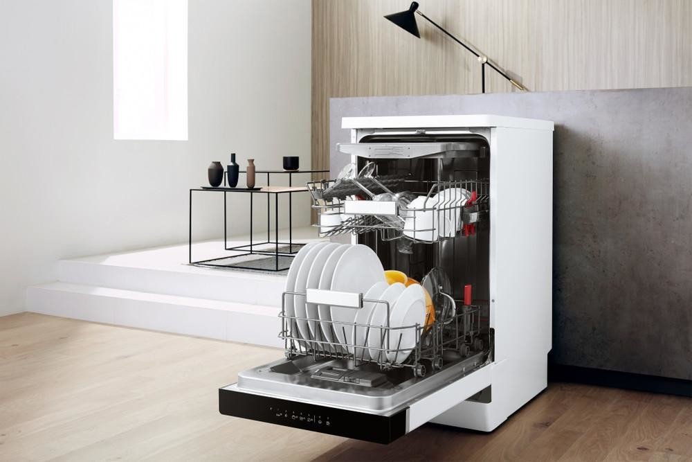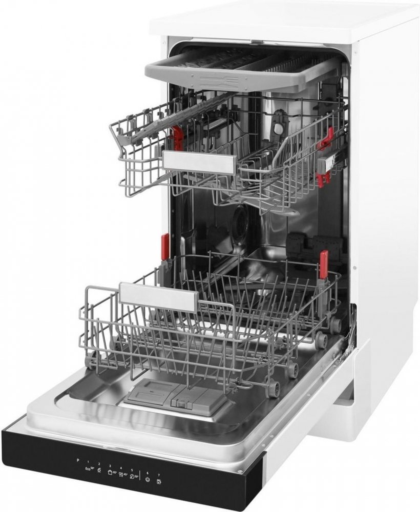 bílé provedení, nastavitelná výška horního koše, plněhodnotná příborová zásuvka