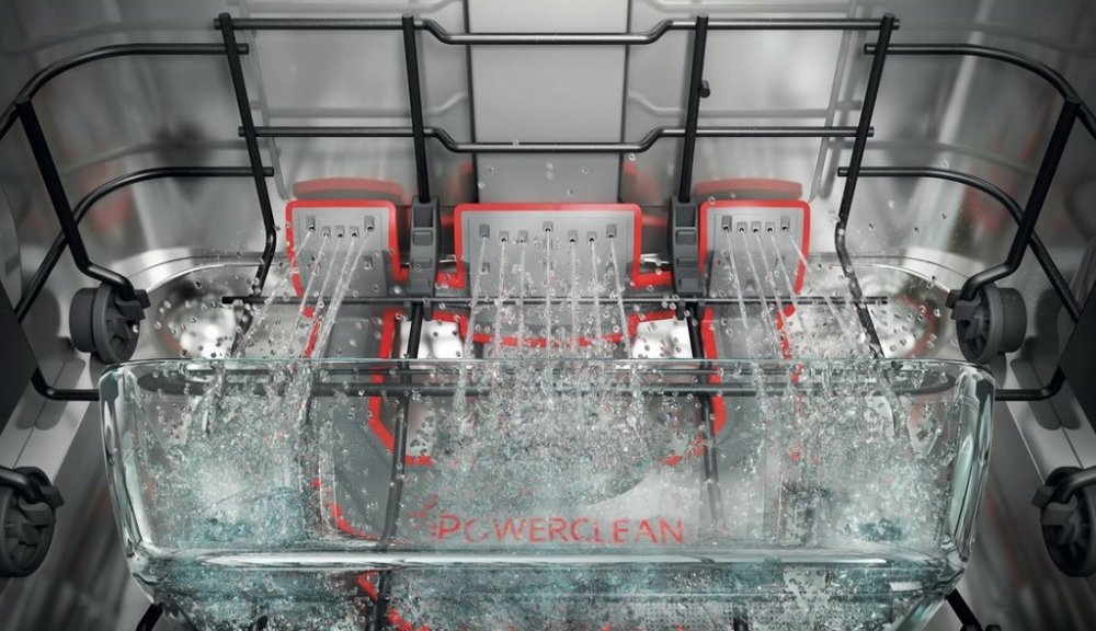 POWER CLEAN je patentovaná technologie Whirlpool pro mytí silně znečištěného nádobí ve vyhrazeném prostoru spodního koše vysokým tlakem vody proudícího ze zadních trysek. Využitím zóny PowerClean se zvýší kapacita spodního koše o 30%.