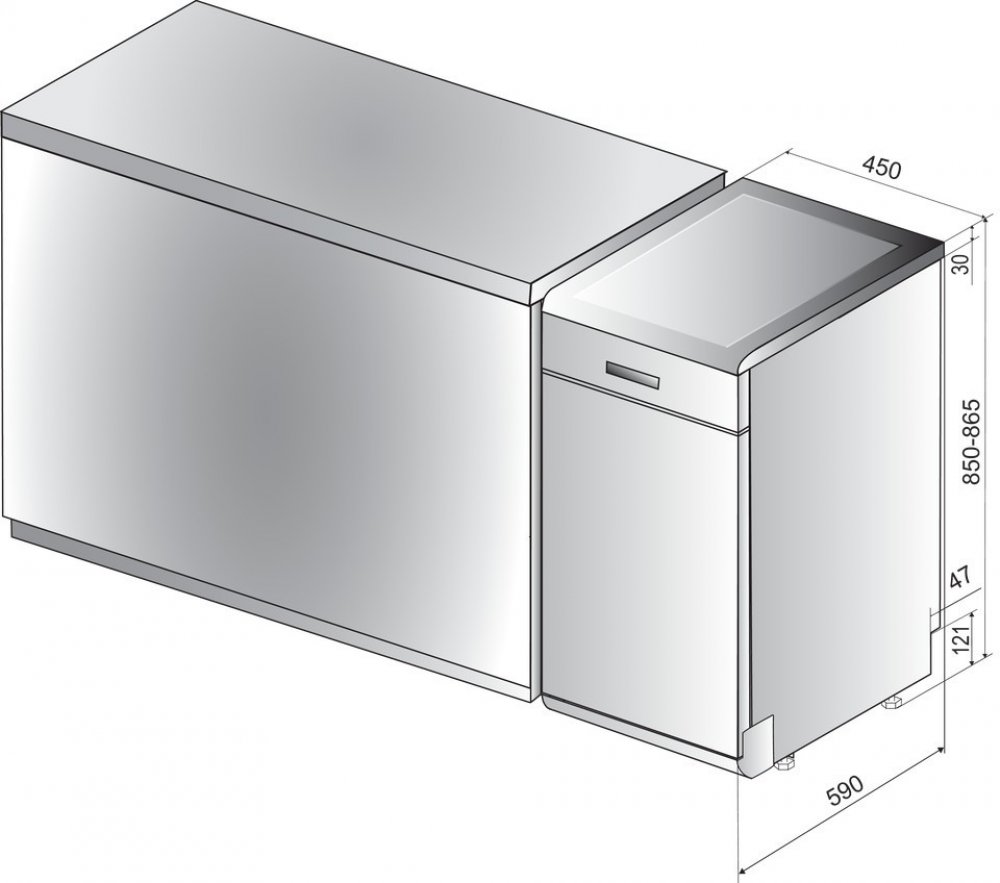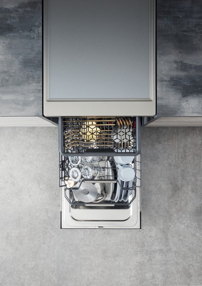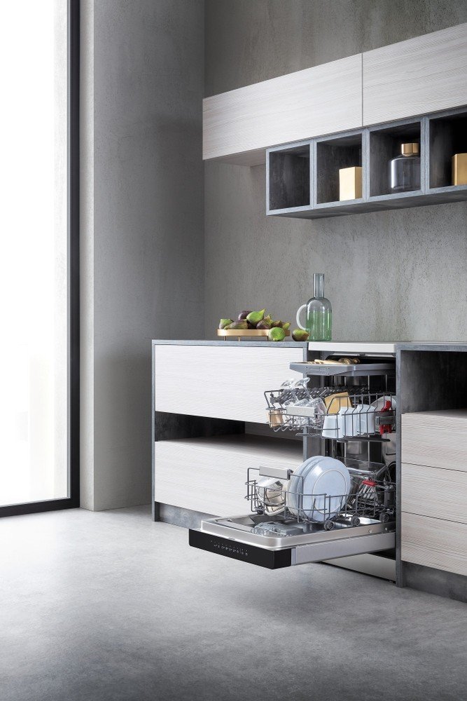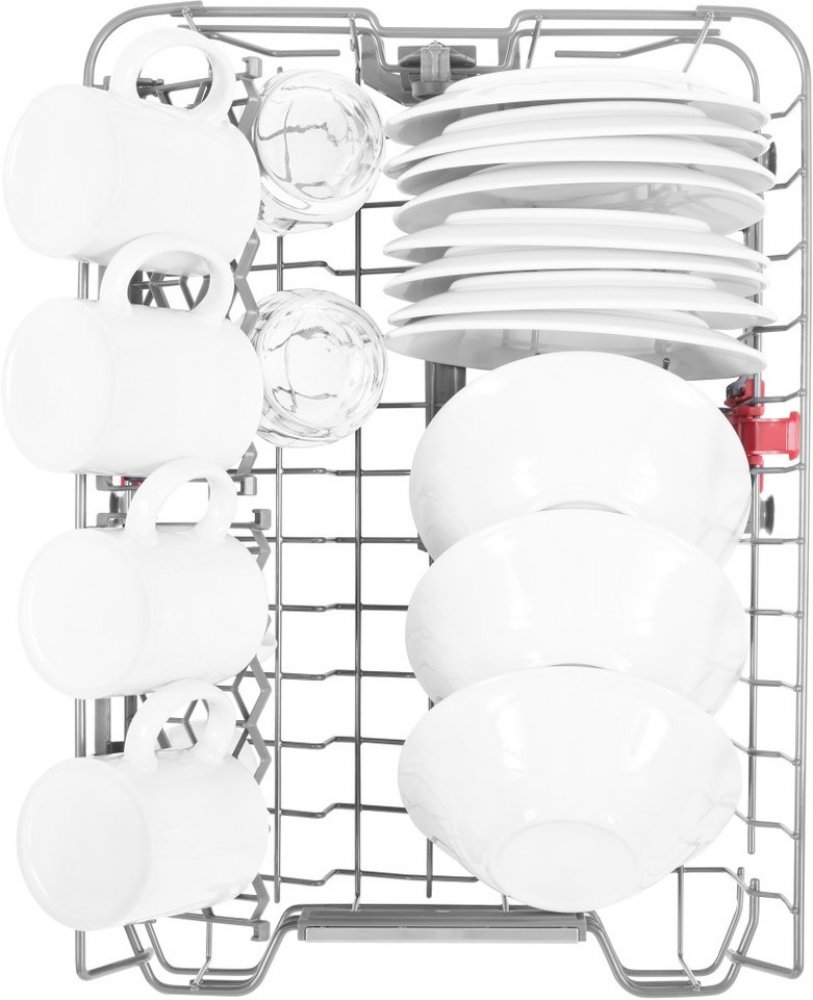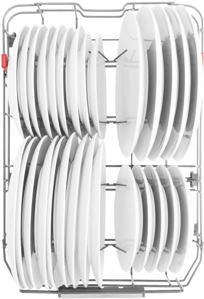 bílé provedení, nastavitelná výška horního koše, plněhodnotná příborová zásuvka