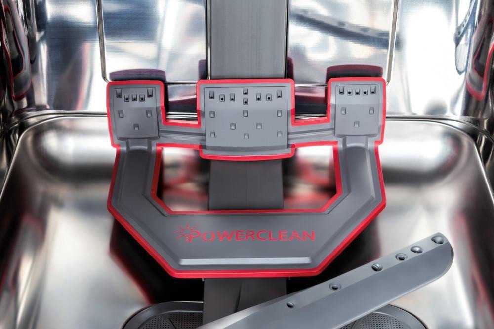 POWER CLEAN je patentovaná technologie Whirlpool pro mytí silně znečištěného nádobí ve vyhrazeném prostoru spodního koše vysokým tlakem vody, proudícího ze zadních trysek. Využitím zóny PowerClean se zvýší kapacita spodního koše o 30%.
