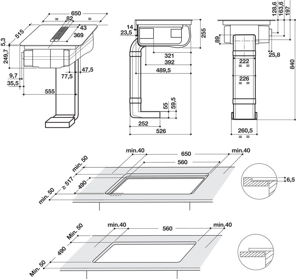 Whirlpool sklokeramické 4 indukční dotykové hliník černá 7400 W A 25 x 65 x 51.5 cm 65 cm 51.5 cm 1.5 m