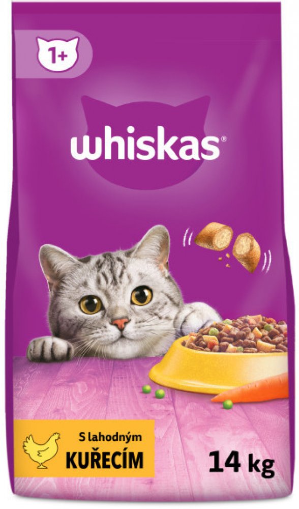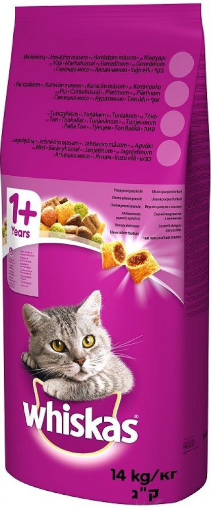 Kvalitní suché krmivo pro kočky Whiskas poskytuje vše, co vaše dospělá kočka z hlediska výživy potřebuje pro dlouhý a spokojený život.