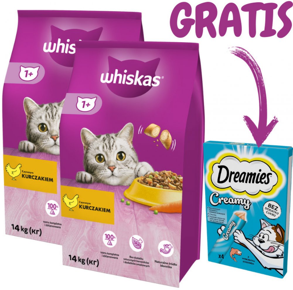 Suché krmivo pro kočky Whiskas představuje nutričně kompletní a vyvážené jídlo pro vaši dospělou kočku. Tyto plněné granule bude vaše kočka milovat – křupavé zvenku a s měkkou a lahodnou náplní uvnitř.