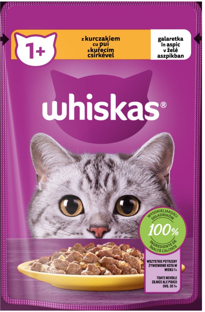 Vlhké krmivo pro kočky s kuřecí příchutí je speciálně připravováno ve šťavnatém želé. Kvalitní suroviny zachutnají i té nejvybíravější kočce. Kapsička je navržena pro kočky od 1 roku.