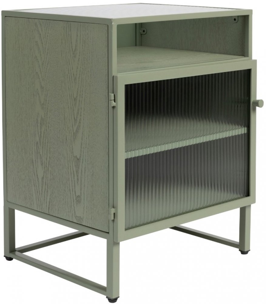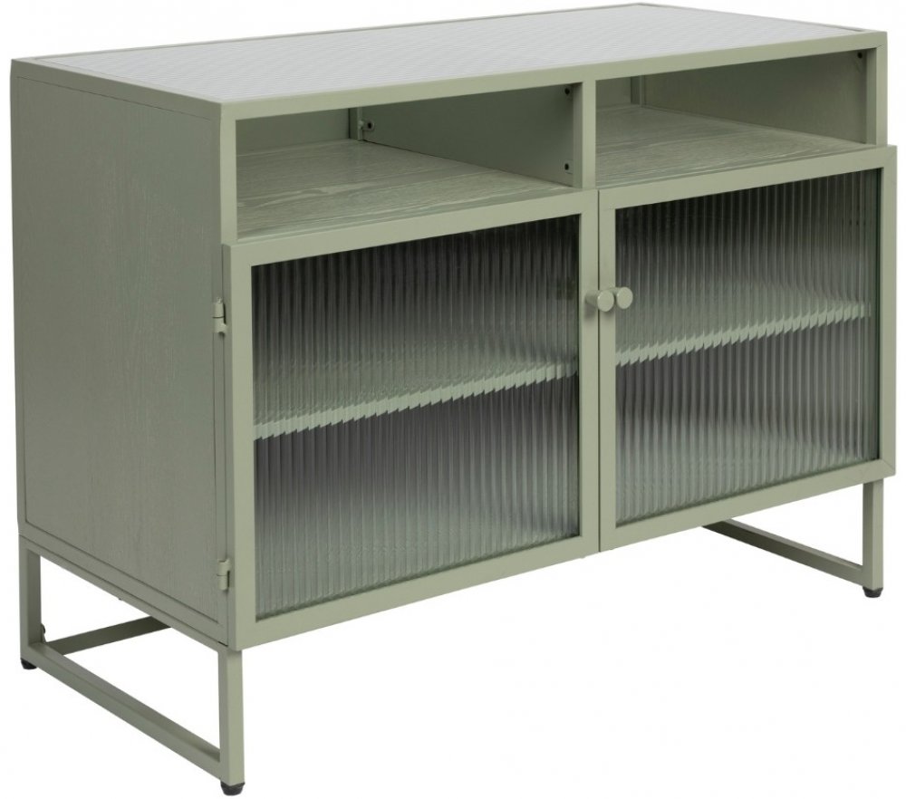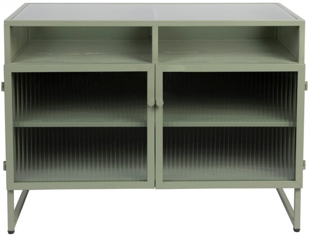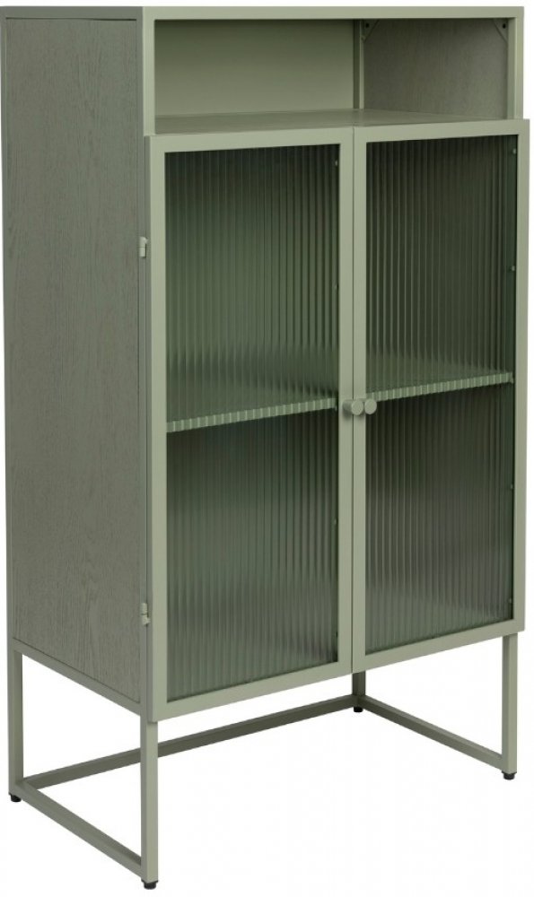 S minimalistickou vitrínou HERBE od značky White Label Living úložný prostor navíc a zároveň obohatíte váš interiér o designový kousek. V HERBE najdete dostatek místa pro vystavení vašich oblíbených dekorací v podobě dvou polic. Vitrína je vyrobena z lakovaného MDF v krásném zeleném odstínu, který prozáří a zvýrazní vzhled vašeho interiéru. Jednoduchá kovová podnož příjemně kontrastuje se skleněnými dvířky a dodává vitríně dojem vzdušnosti. HERBE bude stylovým kouskem, který se bude nejlépe vyjímat v moderním interiéru. Sladit ji můžete s dalšími produkty ze stejnojmenné kolekce.