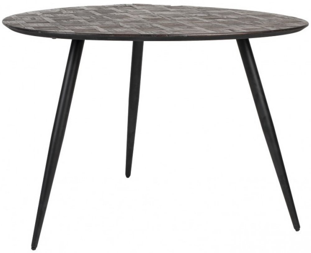 Kulatý jídelní stůl WEBSTER 111x108 cm od holandské firmy WLL je vyroben z hnědě lakovaného teakového recyklovaného dřeva a pevného kovu.