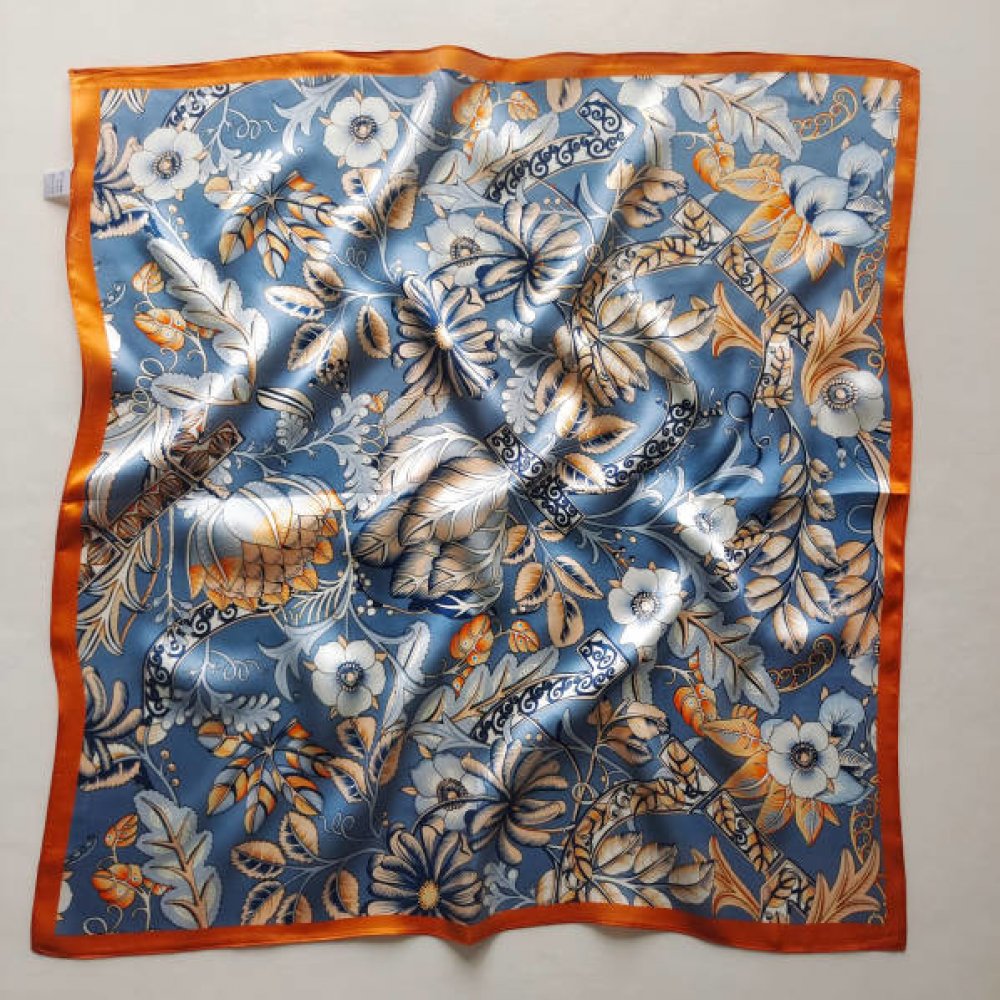 White orchid hedvábný šátek modro-oranžový v dárkovém balení