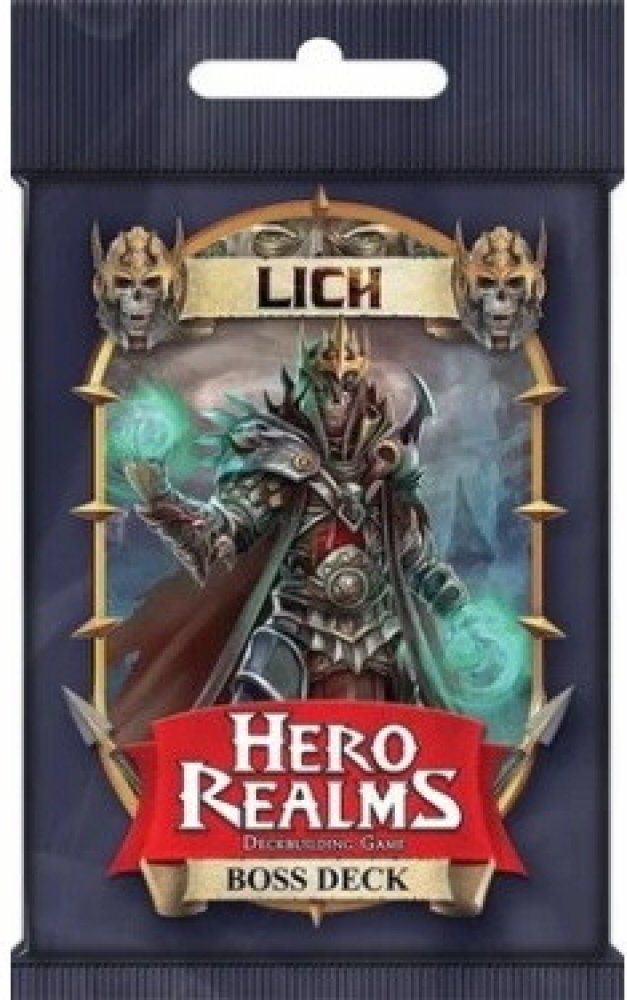 Balíček Hero Realms: The Lich Boss Deck obsahuje 30 karet pro nemrtvého bosse, jímž můžete nahradit svůj herní balíček ve fantasy deckbuildingové hře Hero Realms a hrát s ním proti ostatním hráčům nebo jinému bossovi.The Lich Boss Deck obsahuje 30 karet ve složení: 18 starting deck cards, 9 Treasure Hoard cards, 2 score cards a The Lich boss card.Doporučujeme i základní balení Hero Realms.