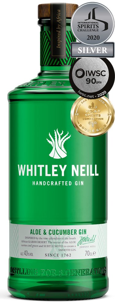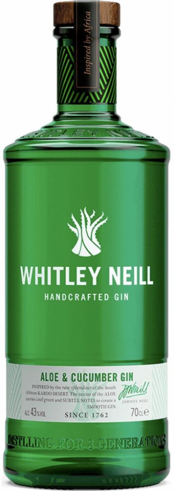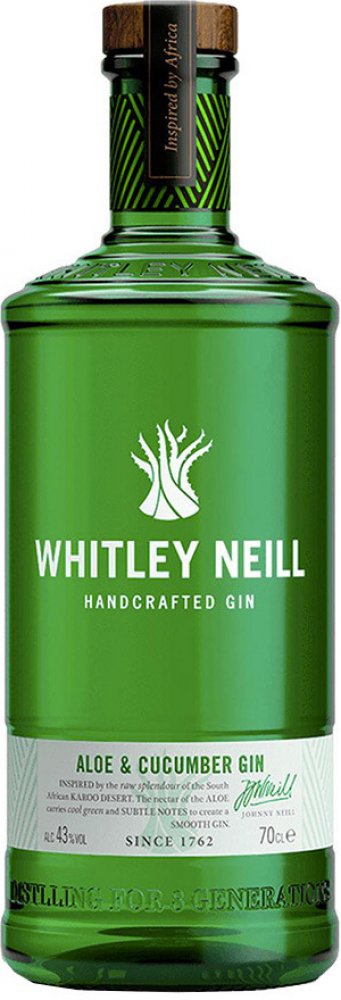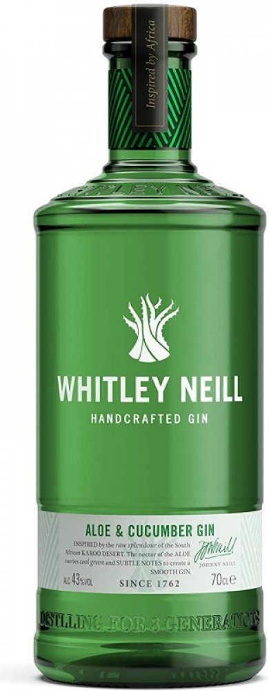 Whitley Neill Aloe Vera & Cucumber - Whitley Neill's opět roste s dalším svěžím ginem Aloe Vera a okurka. Gin inspirovaný pouští Karoo v Jižní Africe. Díky aloe vera je tento jemný gin, velmi svěžím, s nasládlím profilem, který je podpořený známou sladkostí okurek.