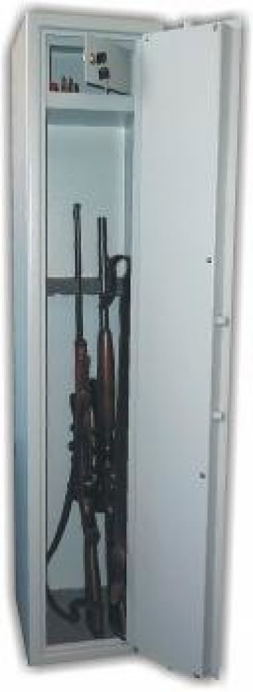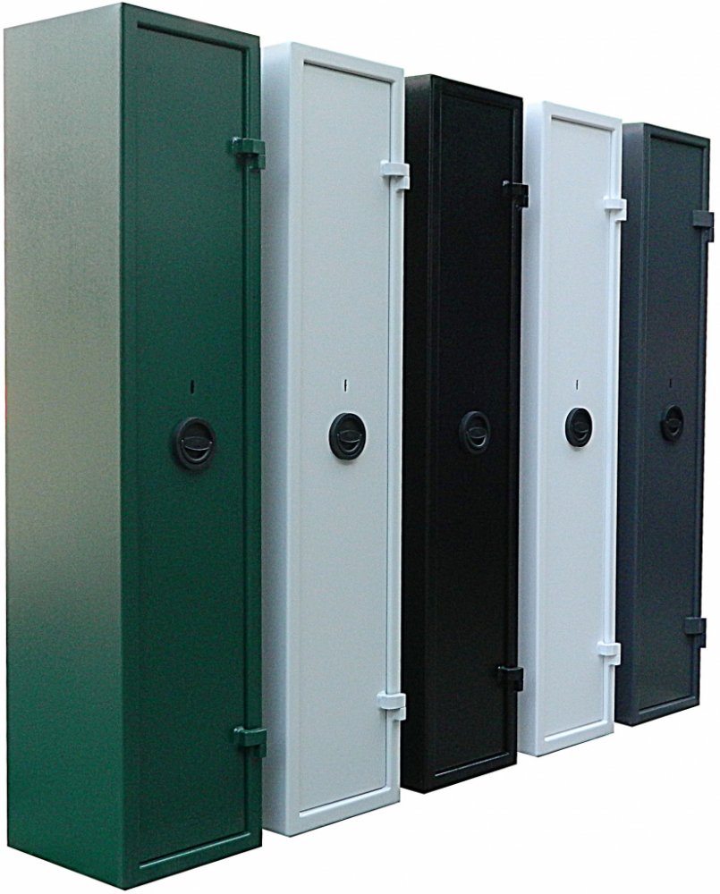 Popis: Zbraňová jednoplášťová skříň na 5 zbraní. S vnitřní uzamykatelnou schránkou.