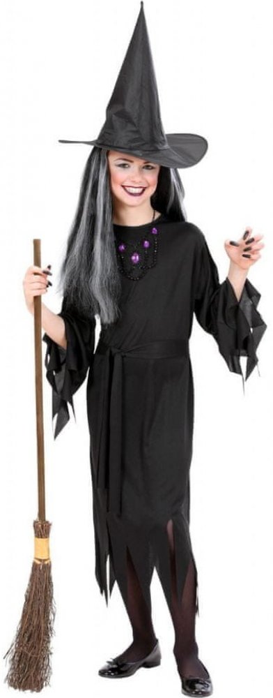 KOSTÝM OBSAHUJE: černé šaty, pásek, čarodějnický klobouk