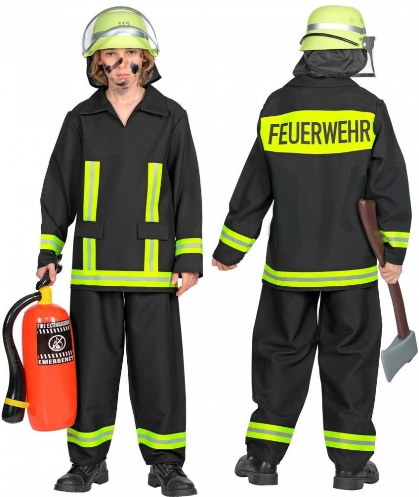 Dětský karnevalový kostým pro hasiče. Kostým od renomované značky Widmann je vyroben z kvalitního a pohodlného materiálu. Výbava hasiče obsahuje: kabát, kalhoty a helmu. Kostým je k dispozici v různých velikostech. Upozorňujeme, že hasicí přístroj není součástí kostýmu!