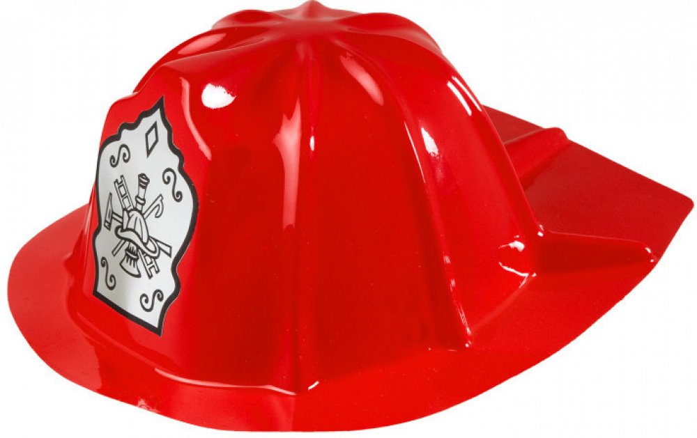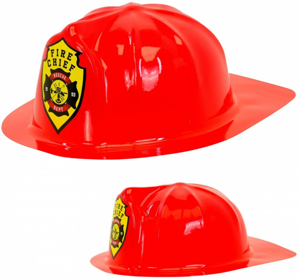 Červená helma z tenkého plastu v dětské velikosti vhodná ke kostýmu hasiče.