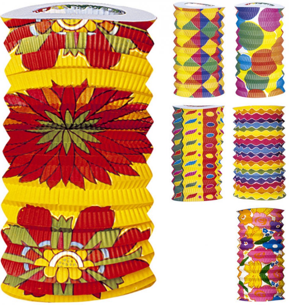 Lampióny s potiskem, válec, různé motivy. Průměr: 15 cm Výška: 22 cm Balení obsahuje: 2 ks Materiál: 90% papír, 8% lepidlo, 2% železo (drát )