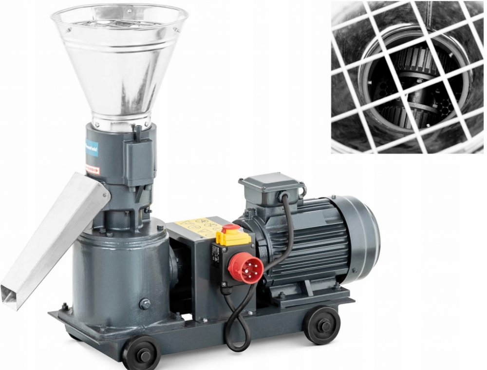 Lis na pelety pro velké množství krmných tyčinek v krátkém čase Ať už chcete levně vyrábět velké množství pelet pro krmení, hnojení nebo ohřev, s lisem na pelety WIE-PM-500 značky Wiesenfield, odborníka na kvalitní zemědělské potřeby, můžete vyrobit až 100 kg krmných tyčinek nebo zpracovat až 60 kg dřevní štěpky za hodinu. univerzálnost – vyrábí pelety pro krmení, hnojení nebo ohřev z organických materiálů výkon – pro zpracování 60 až 100 kg krmiva za hodinu nebo 40 až 60 kg dřevní štěpky za hodinu síla – motor o výkonu 3 000 W zajišťuje otáčky 1 430 ot/min odolnost – delší trvanlivost pelet díky zahřátí na 60 až 80 °C intuitivnost – kompaktní, mobilní a snadno použitelný stroj na čtyřech kolečkách