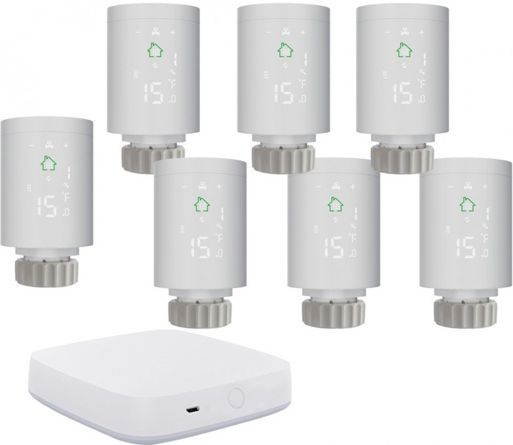 - Toto je výhodný set 7 ks hlavic včetně adaptérů na všechny běžné typy ventilů a 1 ks Zigbee brány Wifi, které je součástí tohoto produktu