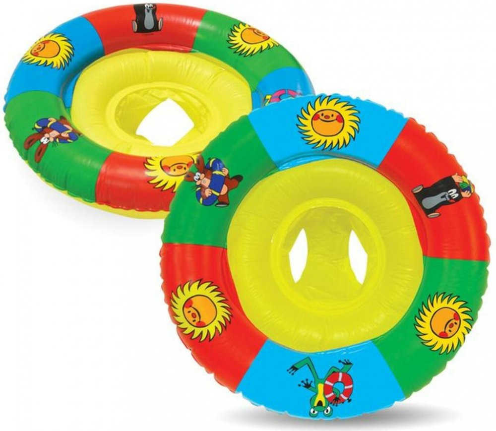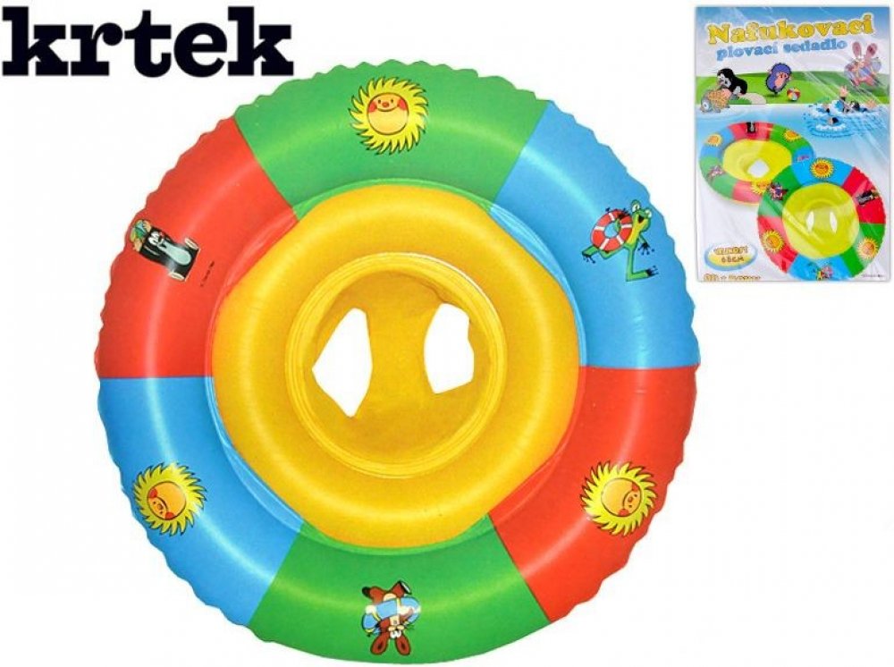 Nafukovací sedátko - kruh pro nejmenší. Dva kruhy, které se nafukují nezávisle na sobě pro větší bezpečí dítěte. S oblíbenými postavičkami Krtečka a jeho kamarádů. Velikost 61 cm.Nafukovací plavací kolo je plavecká pomůcka pro plavání v mělké vodě. Plavecký kruh Krteček používejte pod dohledem kompetentní osoby. Nafukovačku používejte jen v hloubce, kde děti dosáhnou na dno.