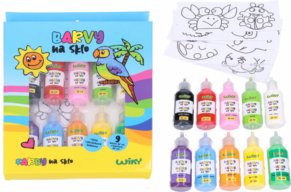 Kreativní sada pro děti v podobě barviček na sklo je vhodná pro děti od 3 let. Stačí nanést barvy na předlohy a poté přelepit na sklo. Nebo můžete rovnou vytvářet vlastní výtvory malováním přímo na okno. Sada obsahuje 9 barev - červená, růžová, zelená, bílá, fialová, světle modrá, oranžová, žlutá, a tmavě zelená, dále pak konturu černé, 2 fólie a obrázkové šablony. Klíčové vlastnosti barev na sklo Wiky 9 + 1, 22 mlVhodné pro děti již od 3 letLze malovat na předlohu a poté ji přilepit na sklo, nebo malovat přímo na skloObsahuje 9 barev - červená, růžová, zelená, bílá, fialová, světle modrá, oranžová, žlutá, a tmavě zelenáDále také obsahuje konturu černé, 2 fólie a obrázkové šablony