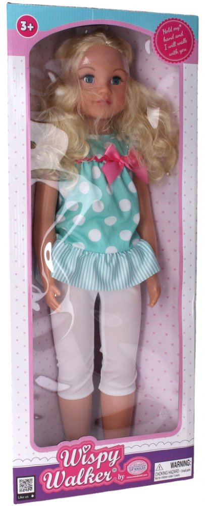 Roztomilá chodící panenka s elegantní mašlí potěší každé dítě. Díky výšce 70 cm působí realisticky a má mrkací oči, které dodávají hře na životnosti. Skvělá volba pro hravou zábavu a rozvoj představivosti.Tato velká chodící panenka je ideální společník pro malé pečovatelky i pečovatele. S výraznou mašlí a jemnými rysy vypadá jako skutečné miminko, přičemž její mrkací oči vtáhnou děti do světa fant...
