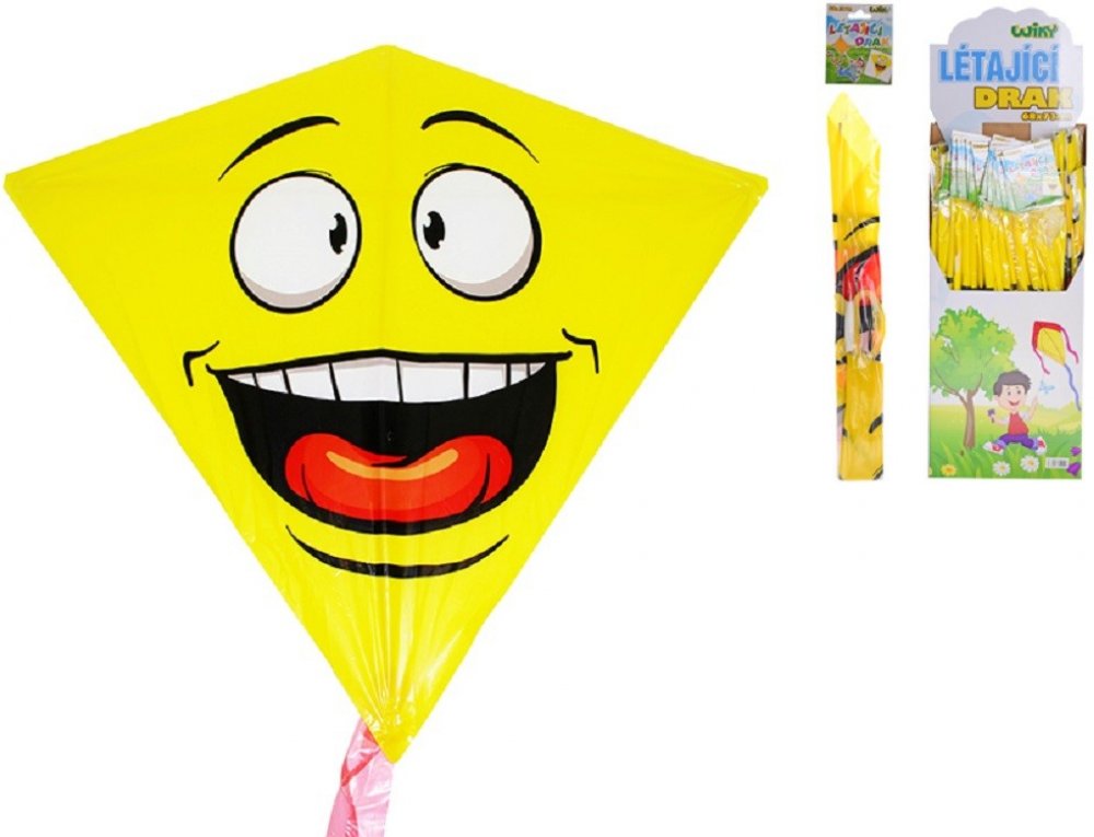 Dětský drak - žlutý s úsměvem - Kdy jindy pouštět draky než na podzim! Že ještě žádného nemáte? Pořiďte si u nás z pestré škály létajících draků. Parádní létající drak se bude na obloze určitě moc dobře vyjímat. Tak hurá na drakiádu! Pojďte se společně vyřádit při pouštění draků, třeba se zajímavými pestrými motivy.