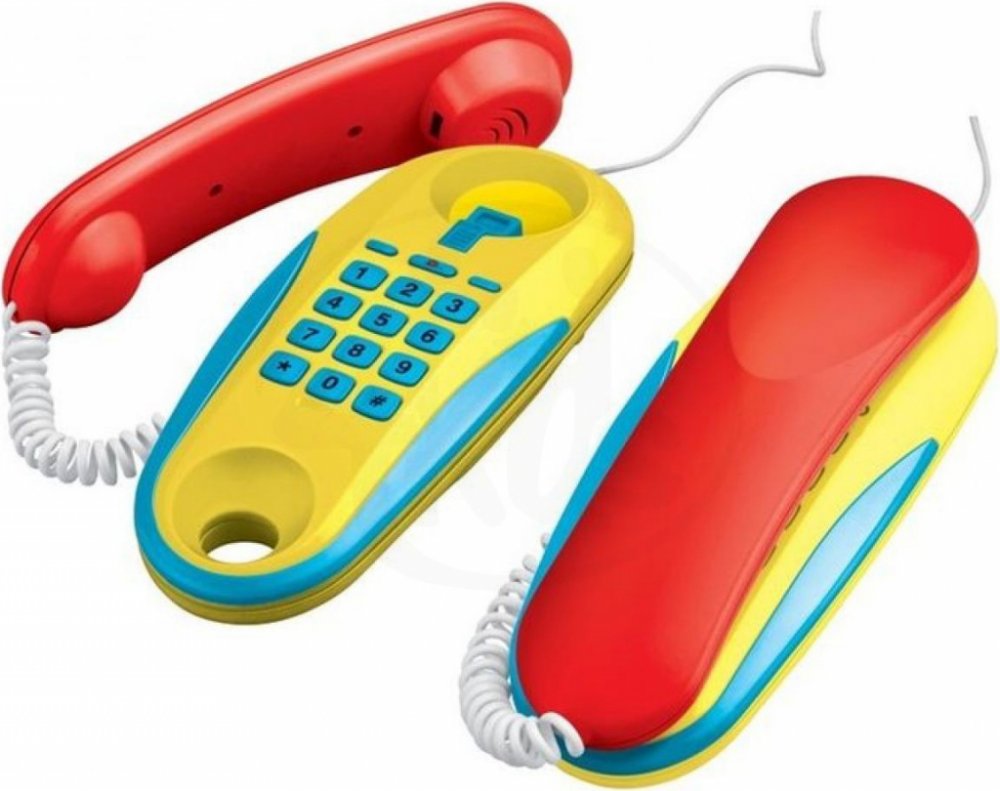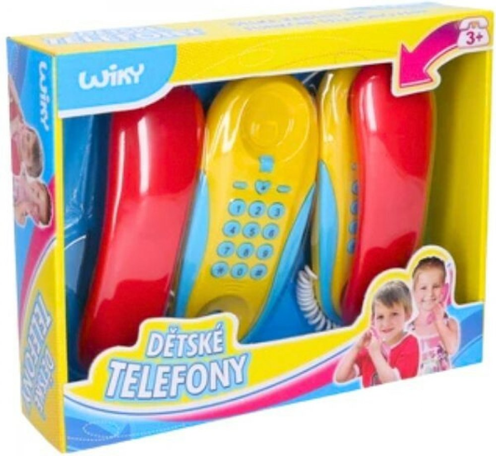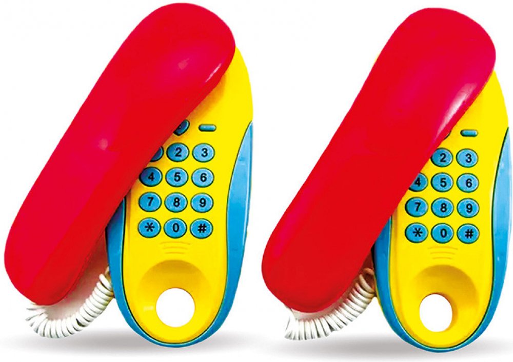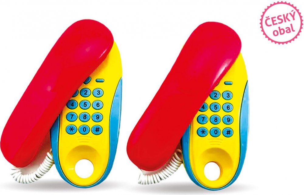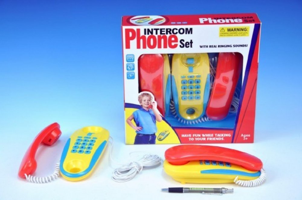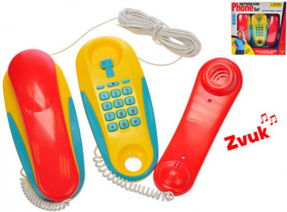 Funkční telefony pokojové na baterie. Dvojice telefonů z pokoje do pokoje jsou spojené 7m dlouhým kabelem. Hračka může sloužit nejen k dětským hrám, ale také ke spojení třeba s maminkou v kuchyni. Stačí jen na jednom přístroji zmáčknout číselník a druhý začne vyzvánět.