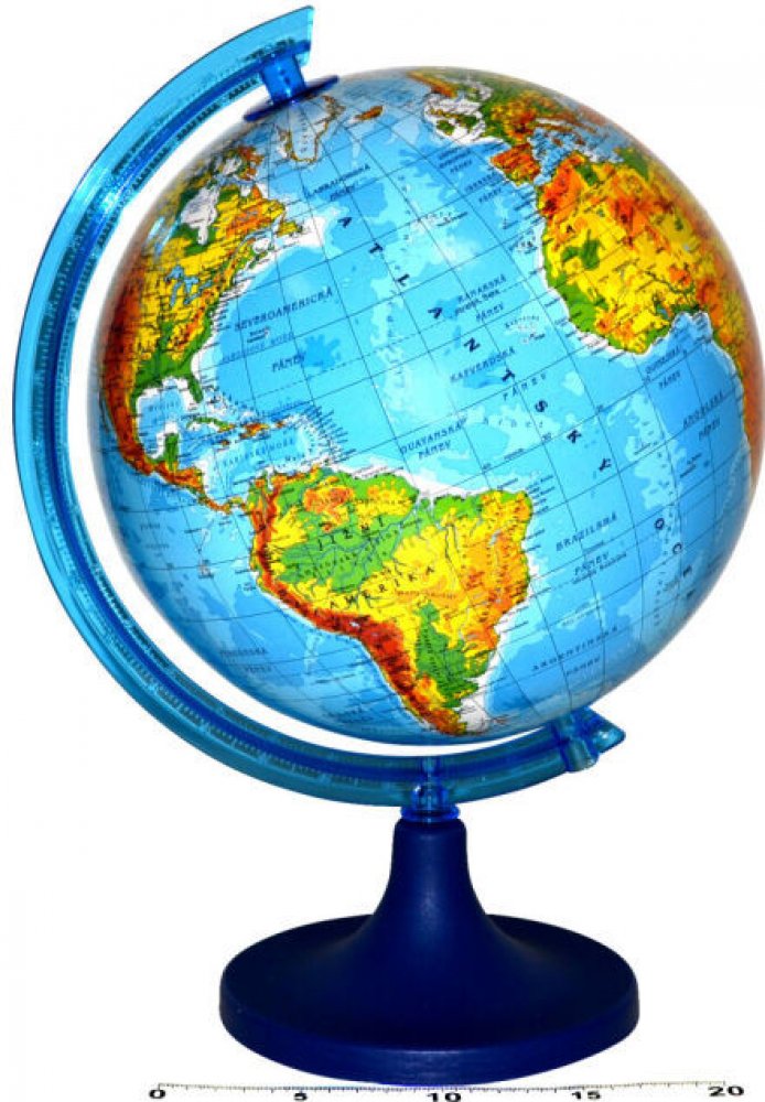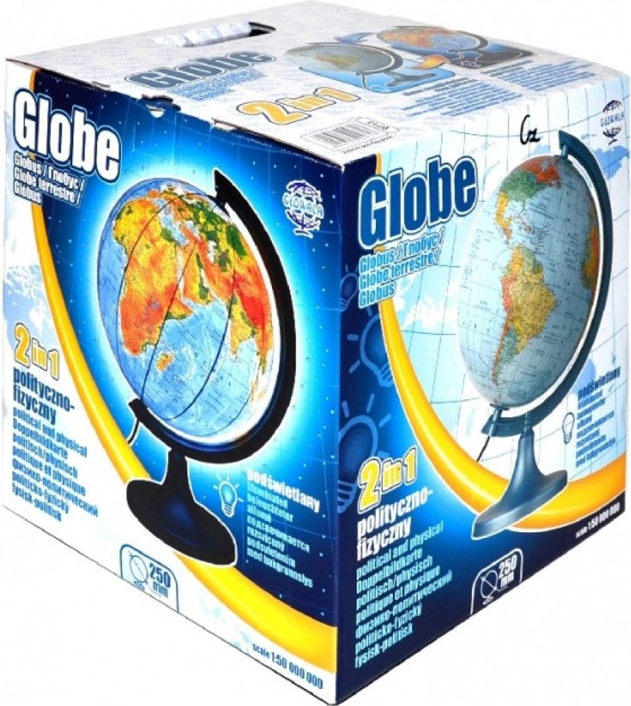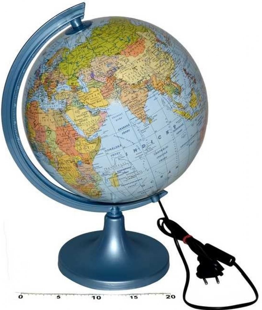 Výška: 38 cm, půlpoledník a podstavec: plastový. Globus politický, po rozsvícení se objeví mapa zeměpisná v češtině.