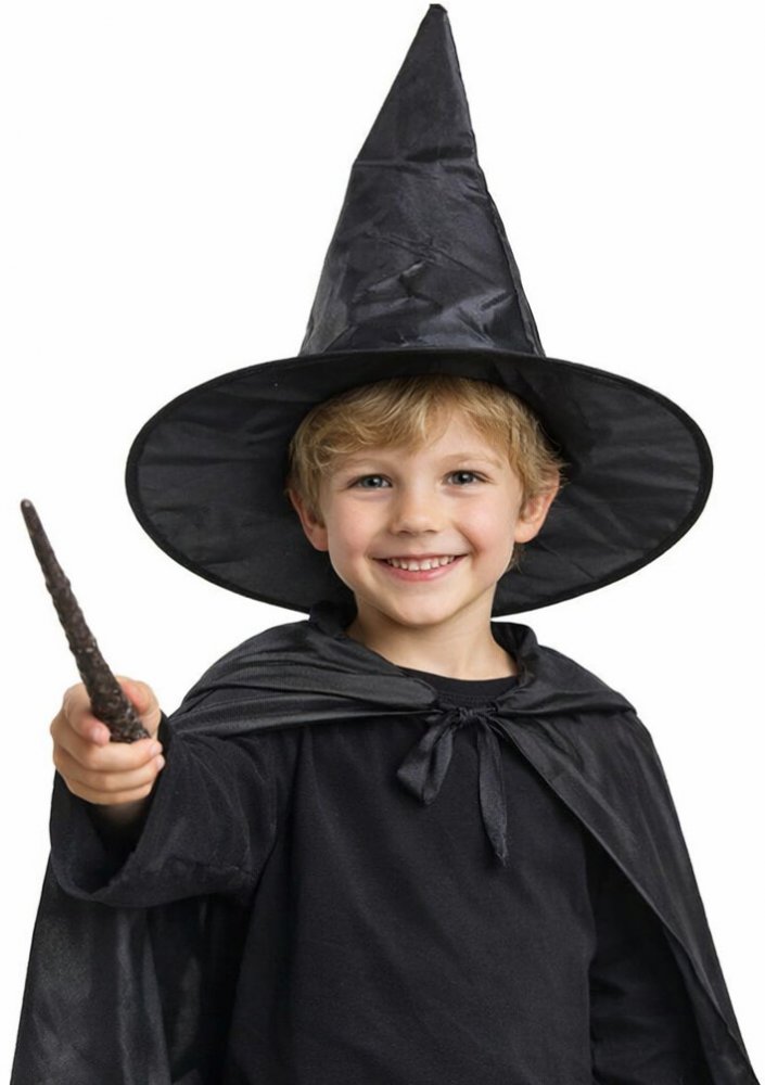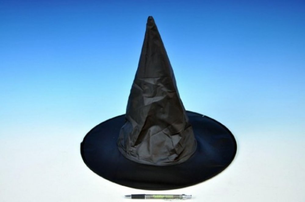 Klobouk na karneval jako doplněk ke kostýmu čarodějnice. Pokud se chystáte na párty nebo halloweensk Čarodějnický klobouk černý Jednoduchý černý klobouk na karneval jako doplněk ke kostýmu čarodějnice. Můžete ho použít na dozdobení nebo i bez něj. Pokud se chystáte na párty nebo halloweenskou oslavu tento klobouk nesmí chybět ve vašem šatníku. Rozměry: obvod hlavy 58 cm průměr 39 cm výška 32 cm